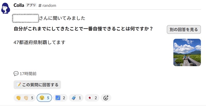 実際に、メンバーがcollaに回答している様子はこちらです。