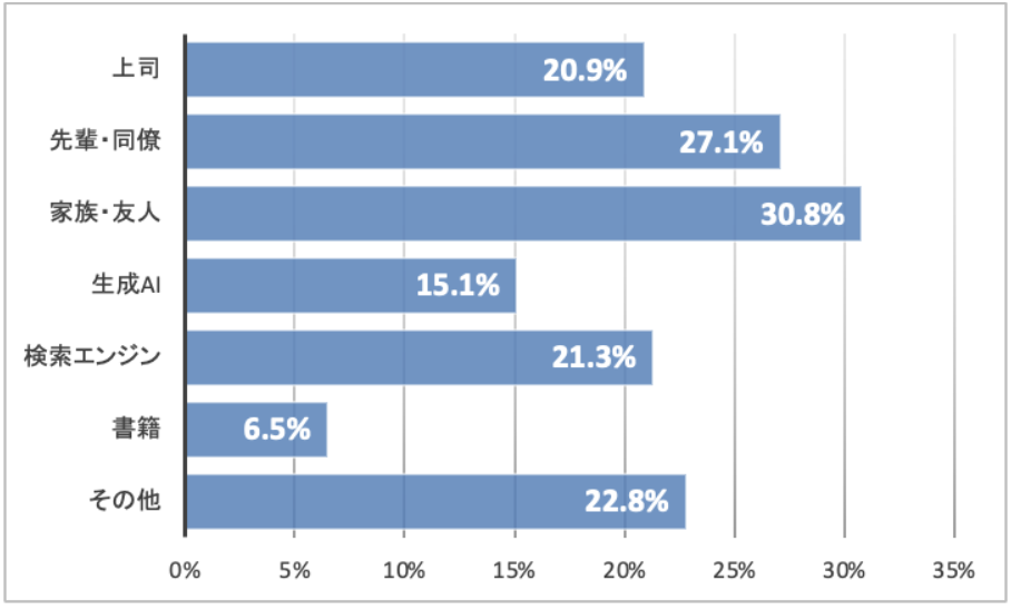 Q5. 仕事に対する個人的な不安やキャリアの悩みがあるとき、あなたは最初に何を頼りますか。(複数回答可)